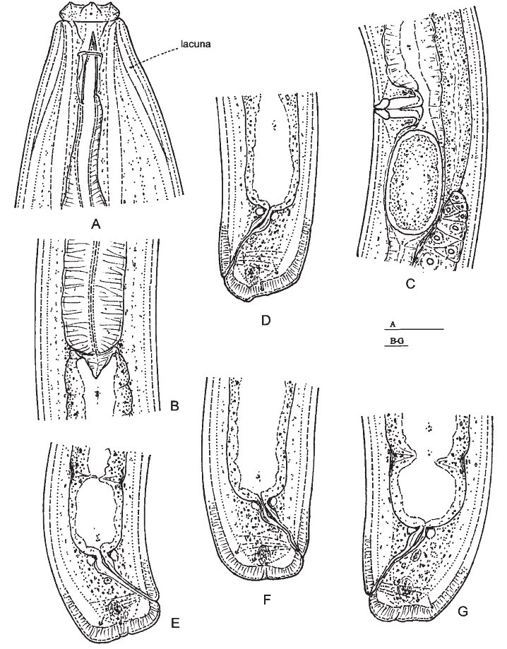 | Diferentes aspectos de la morfología de Aporcelaimellus acaudatus (Fuente y más info: Andrássy 2010). |
