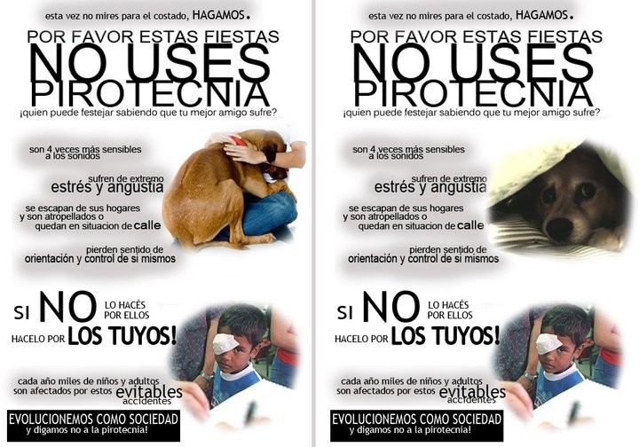 Los humanos compartimos nuestros hogares con otros animales a quienes amamos y que nos hacen compañía. Sin embargo, ellos no perciben su mundo como nosotros. Su sentido del oído es mucho más agudo, lo cual provoca que sean muy sensibles a la bulla extrema causada por los juegos artificiales.