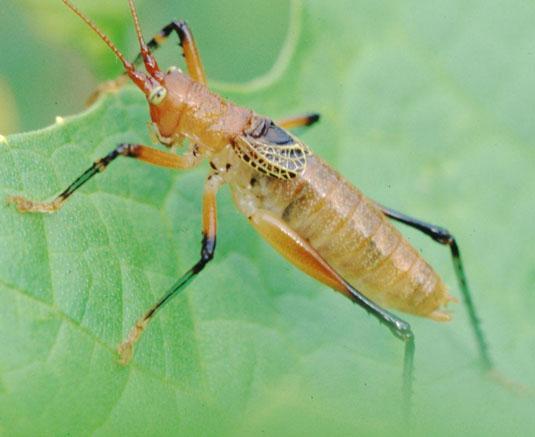 | Imagen 6: Macho del Grillo de Patas Esmeraldas, por Holger Braun. Fuente: (Orthoptera Species File) |