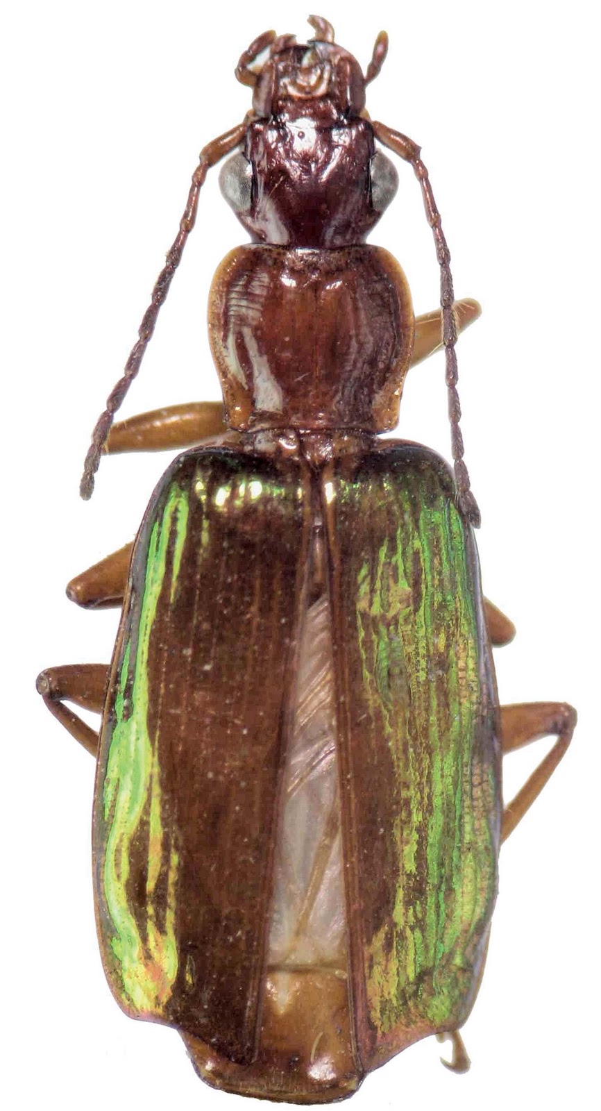 | Imagen 3: Ejemplar hembra de Calleida desenderi proveniente de la Cascada de San Rafael, Sucumbíos, Ecuador. Fuente: Casale (2011). |