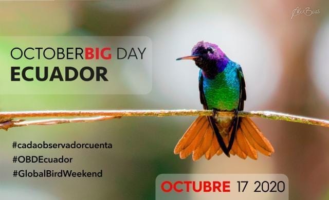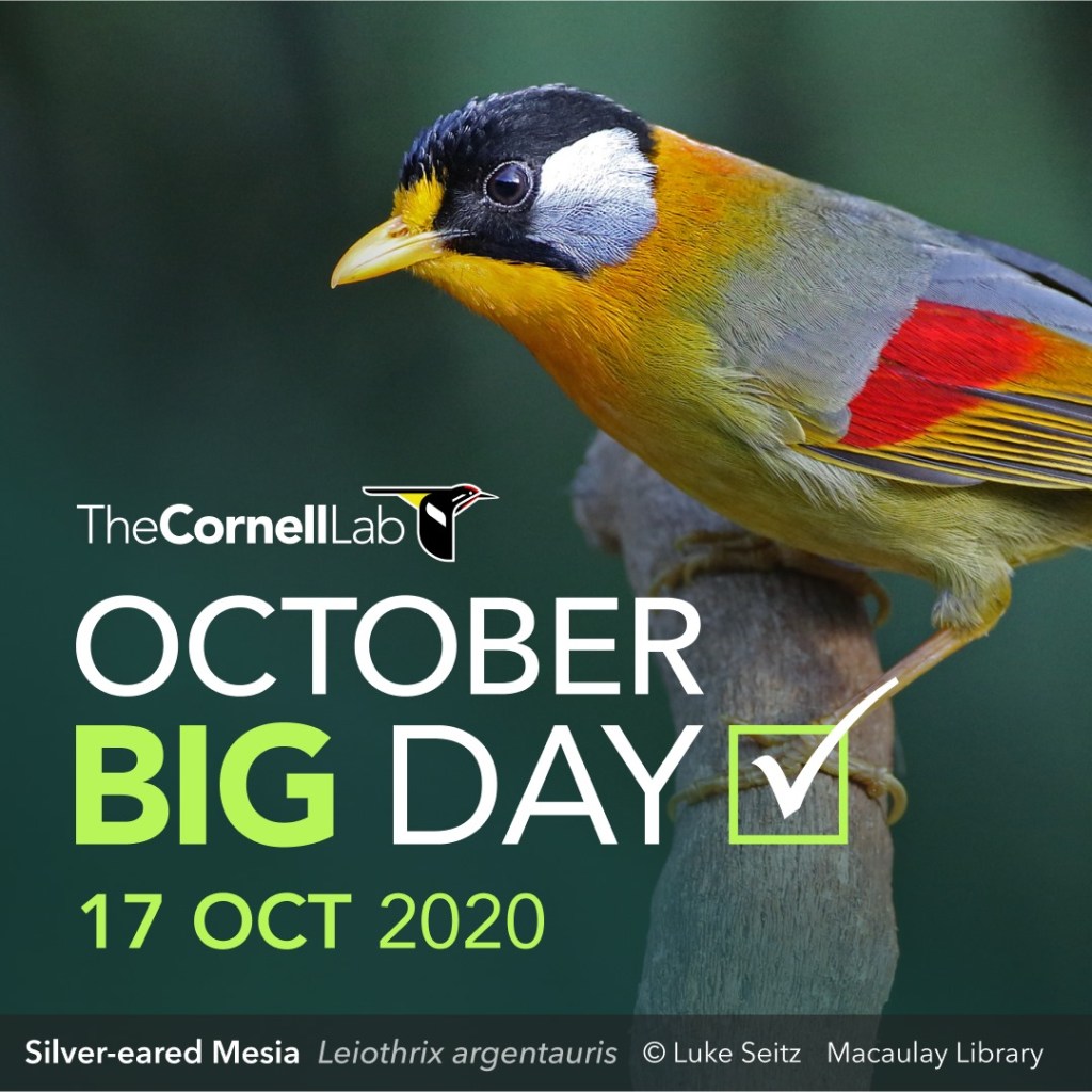 Este sábado 17 de octubre de 2020 se realizará el evento mundial más grande de observación de aves y ciencia ciudadana: October Big Day 2020 & Global Bird Weekend, organizado por Cornell University (The Cornell Lab of Ornithology) y BirdLife International.